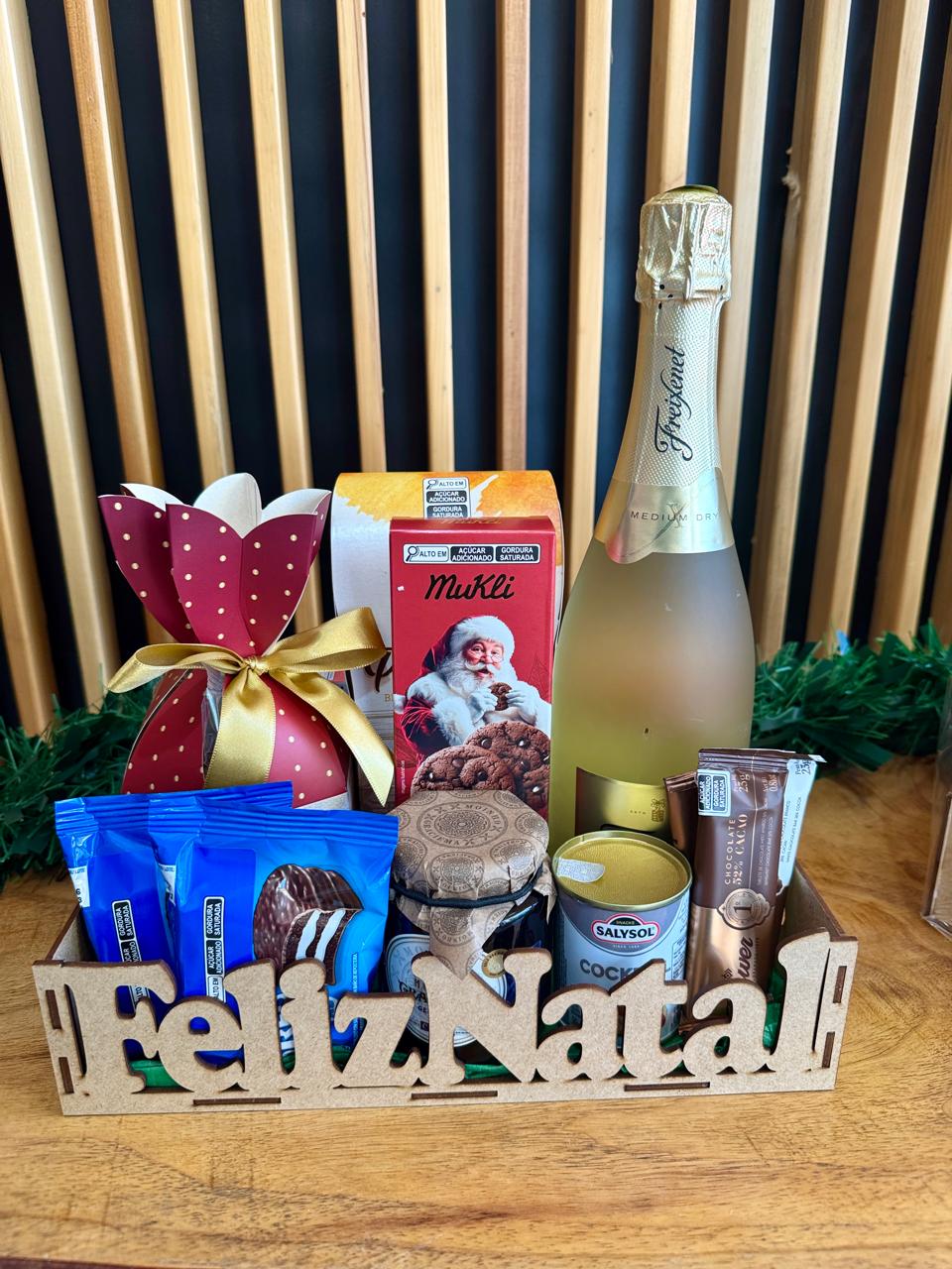 Uma seleção especial com sabores natalinos e produtos artesanais, perfeita para presentear com elegância. Esta cesta combina doces finos, snacks salgados e itens cuidadosamente escolhidos, montados em uma bandeja de madeira com acabamento impecável.